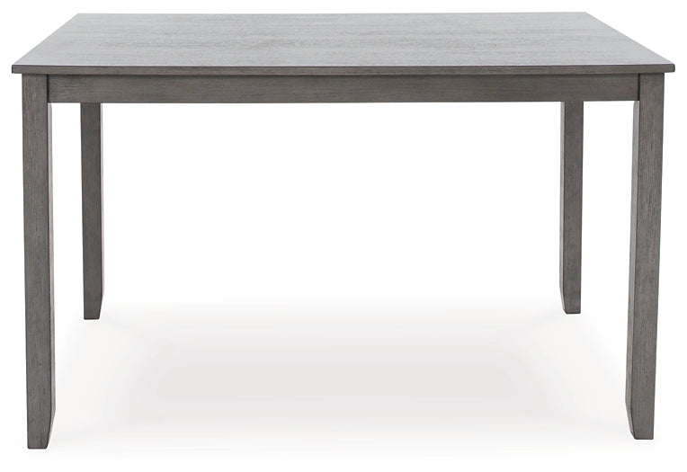 Perfect portion. Striking a simply chic pose, this counter height dining set is crafted with fascinating flair. A subtle gray wash finish gives the clean-lined design a casually cool sensibility. Plushly cushioned seats in a soft, neutral upholstery add to the allure. During casual get-togethers, daily dinners and family game nights alike, this set serves up stylish function.